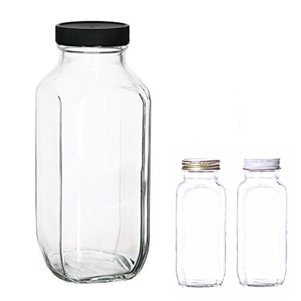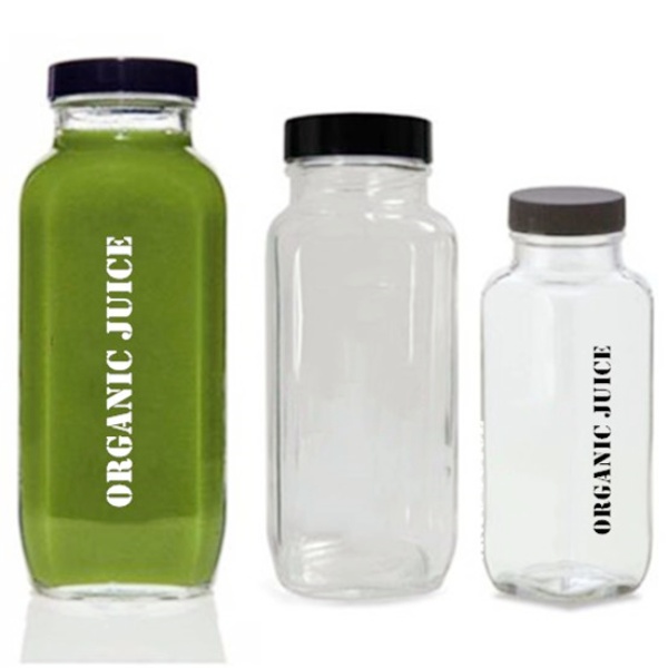 French Squre Glass Bottles, all sizes available: 2oz 4oz 8oz 10oz 12oz 16oz and 32oz