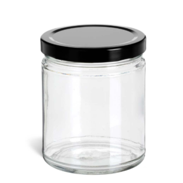 Clear Straight Sided Glass Jar with Black Metal Lid