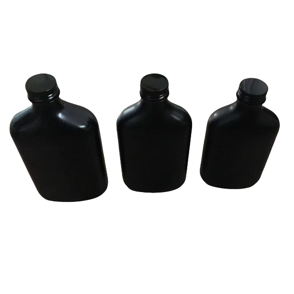 Flat glass bottle with screw cap, available sizes 50ml 100ml, 200ml, 250ml,350ml and 500ml . Suitable for cold brew coffee, juice,milk water..etc.