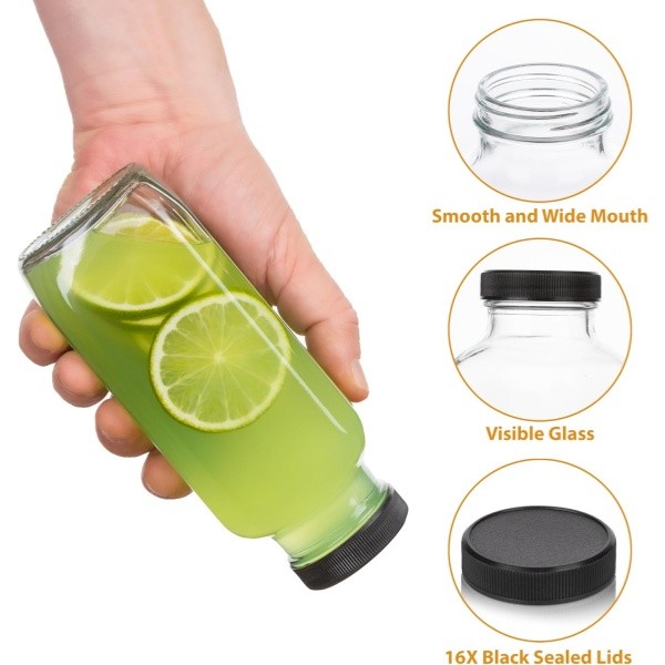 More than simply juice jars, these 16 oz glass jars with lids can be used to store a range of different liquids; Ideal as glass smoothie jars with lids or even kombucha bottles.