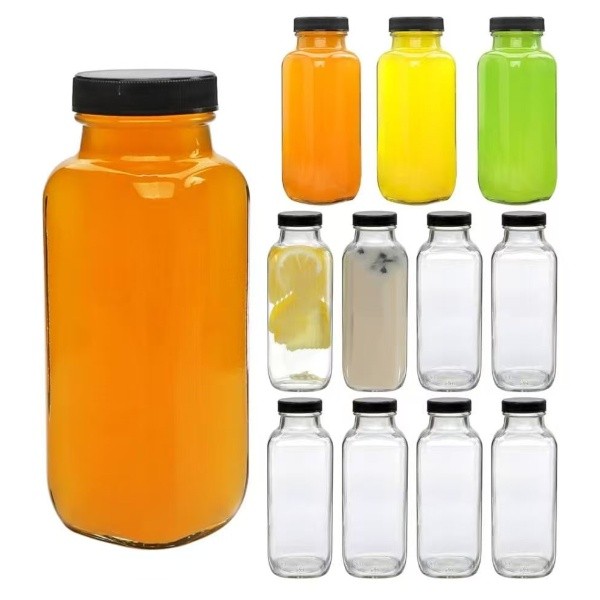 16oz French square juice glass bottle wi